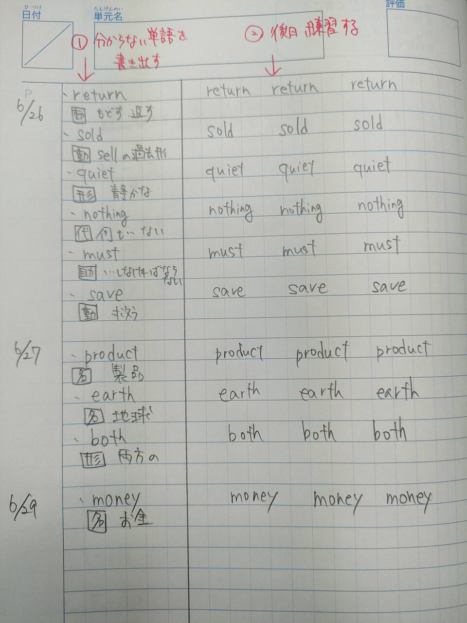③後で、時間があるときに書いて練習する。