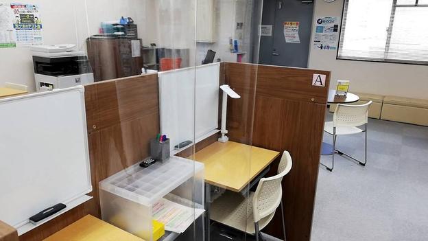 ナビ個別指導学院の授業は、個別の席ごとに設置された自分専用のホワイトボードで解き方や考え方を一緒に確認、それから生徒が問題を解くという「個別授業」スタイルです。