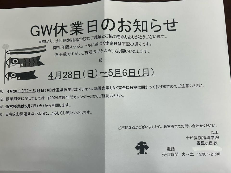 当教室の休業日をご案内しますので、間違えて通塾してしまわないようにしてください。