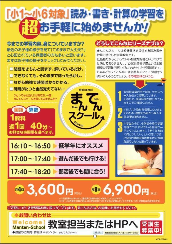 「まんてんスクール」(月4回40分プリント学習)をご準備させて頂いております。