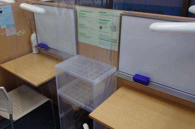 ナビ個別指導学院の授業は、個別の席ごとに設置された自分専用のホワイトボードで解き方や考え方を一緒に確認、それから生徒が問題を解くという「個別授業」スタイルです。