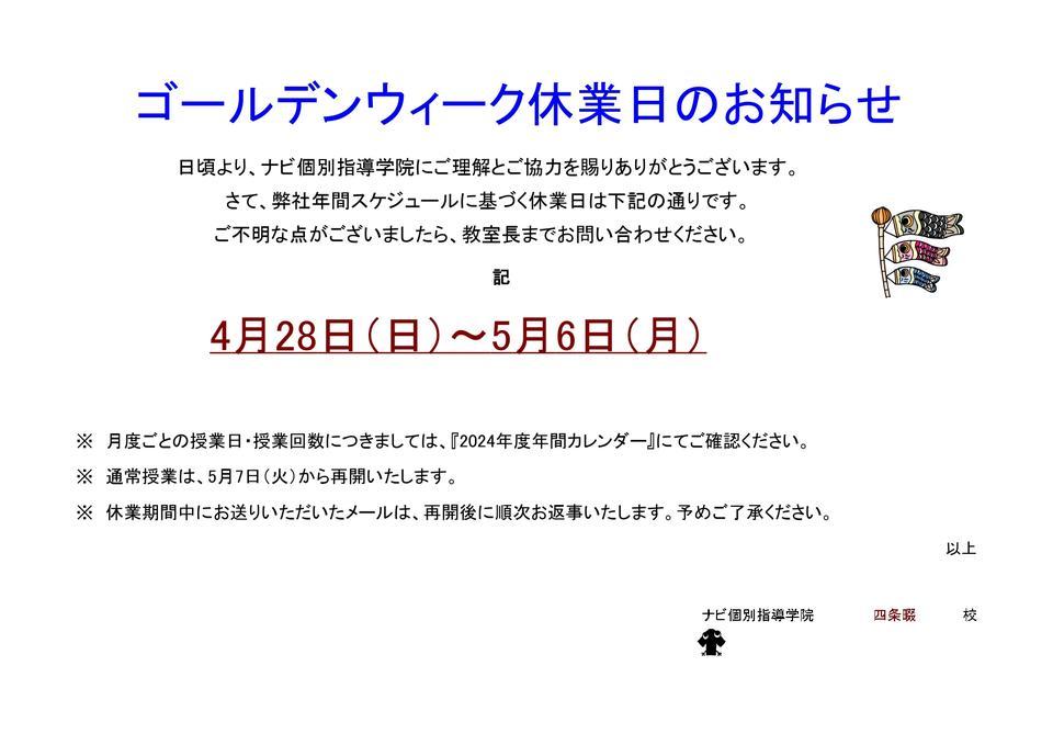 では改めて、当校の2024年GW休業日ですが、