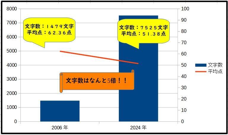 さらに、共通テストの問題は年々問題文の文字数が増えていて、20年前のなんと「5倍」の文字数なんです。