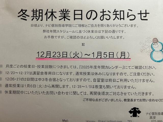 ~冬期休業日のお知らせ~