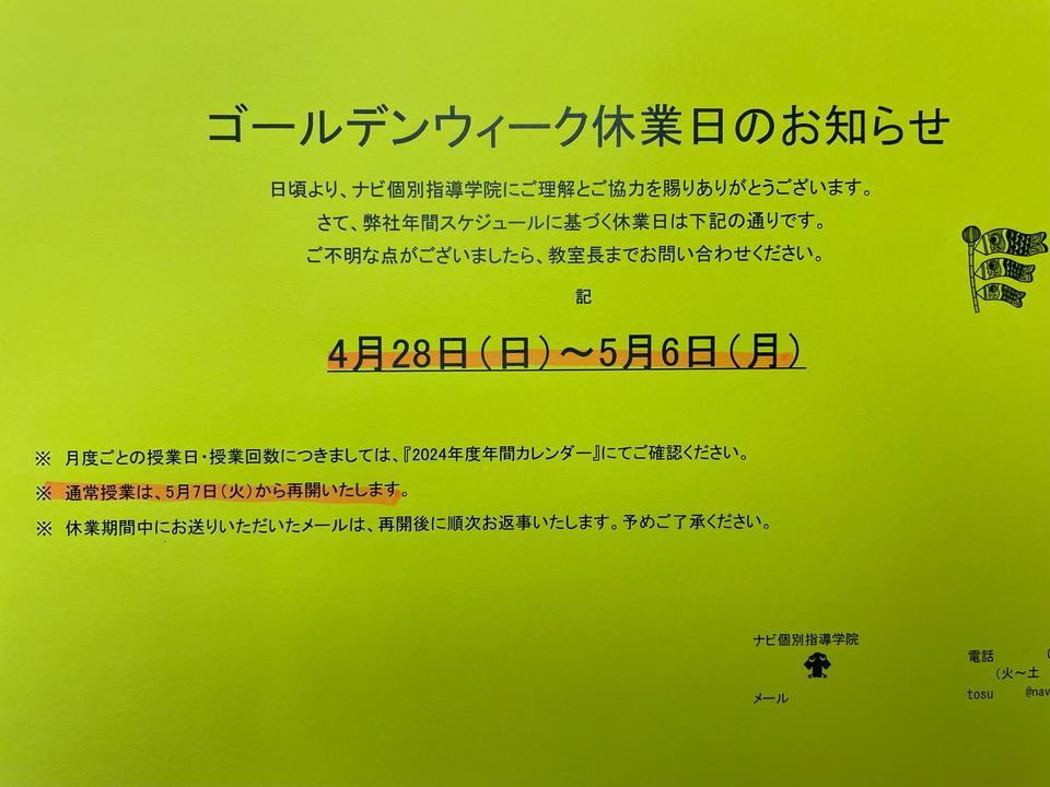ゴールデンウィーク休業のお知らせ