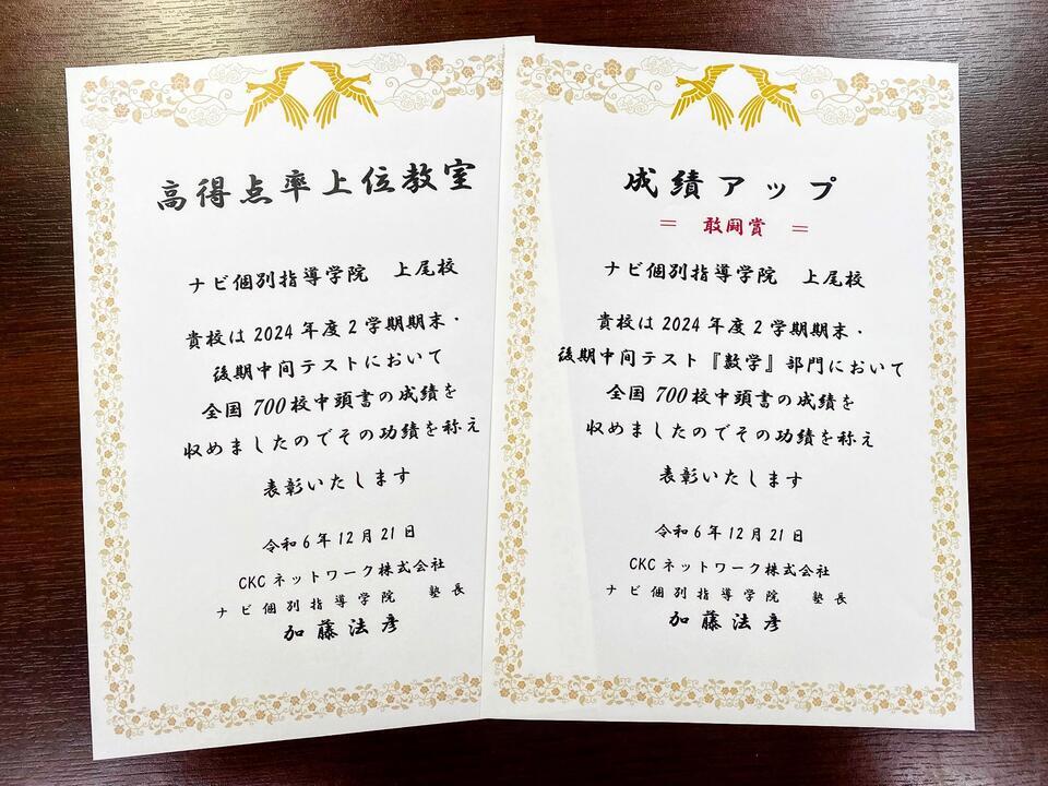 2学期のテスト結果の分析から、上尾校は塾内の成績上位教室として