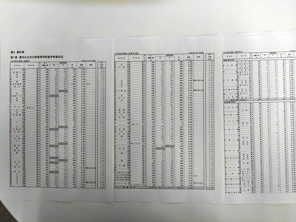 既にご承知の方も多いと思いますが、先日「10月の段階での県立高校の倍率」が発表されました。