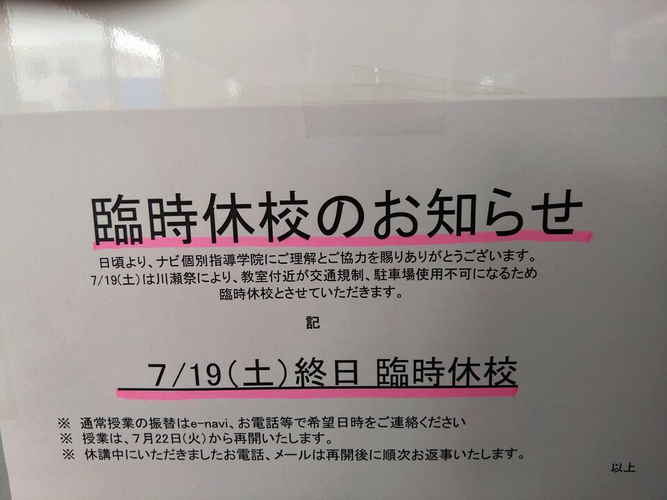よって7月19日(土)は臨時休校とさせていただきます。(20日(日)はもともとお休みです)