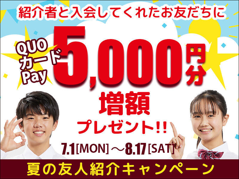 友人とその友人を紹介してくださった方、双方にQUOカードをプレゼントしておりますが、通常2000円分のQUOカードが、今だけなんと5000円分に増額!