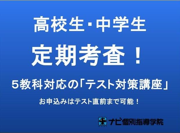 ナビ個別指導学院では、通常の授業とは別に定期テストの前にお申し込みいただける