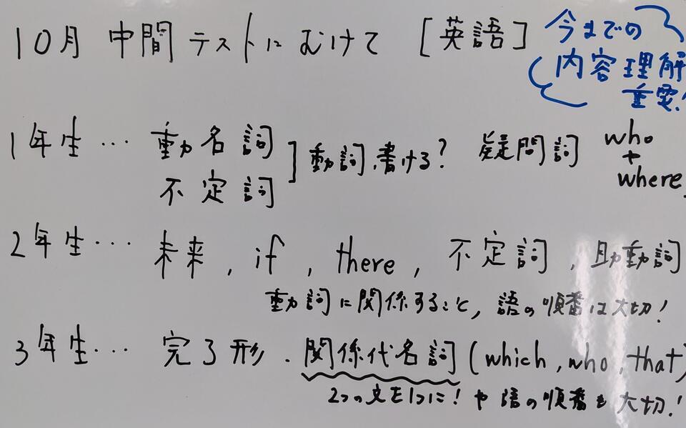 本日のブログについては、10月にある中間テストに