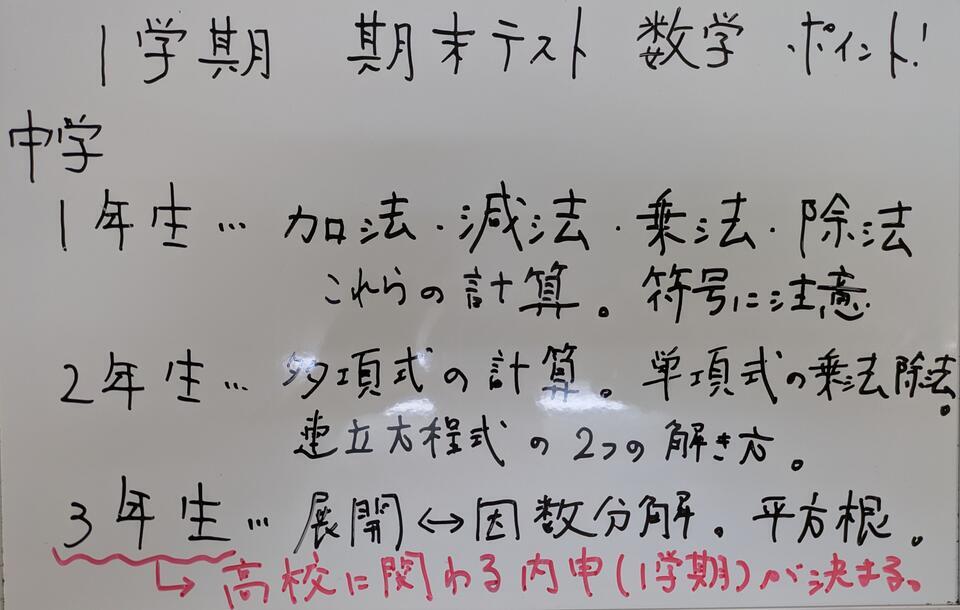 写真は、大体今回のテスト範囲はここではないか(数学)?