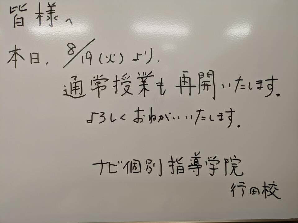 本日、8/19火曜日から、体験授業と合わせ、通常授業を