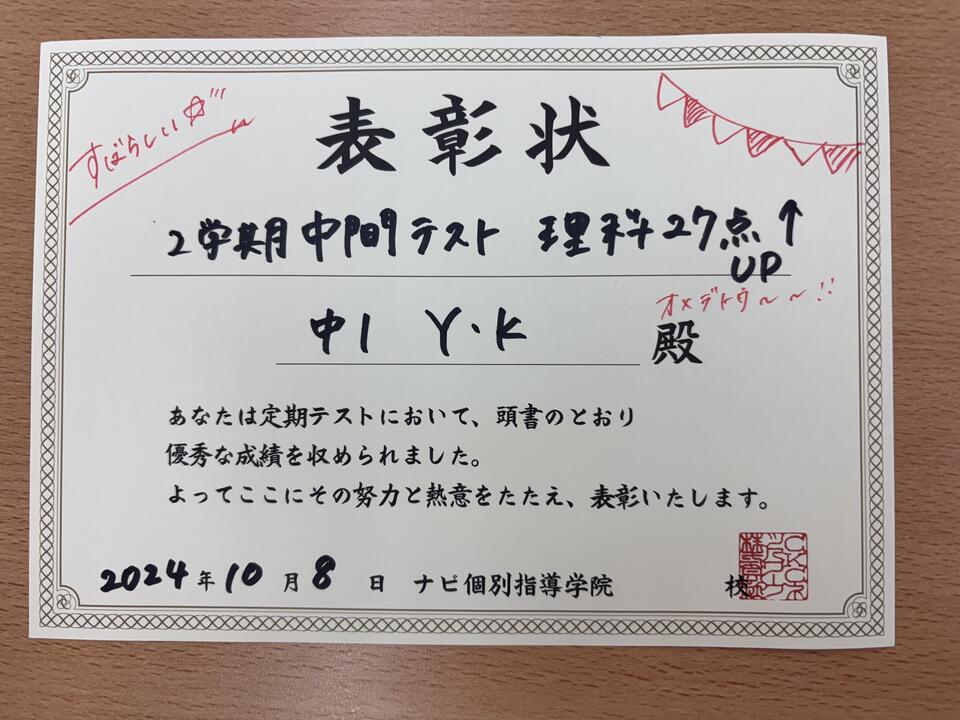 その結果、2学期中間テストでは理科社会ともに成績アップ!