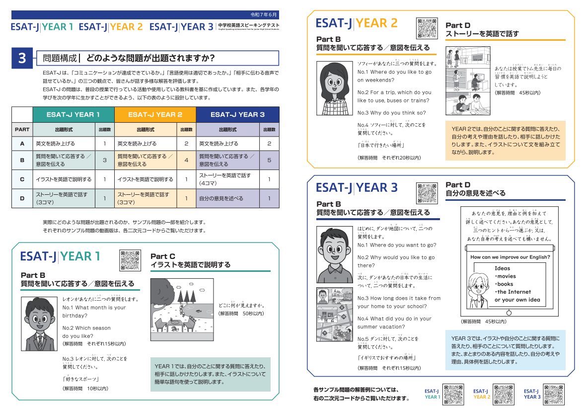 その対策の一環としてお隣の東京都では2022年から中学生を対象にスピーキングテスト(通称:ESAT-J [English Speaking Achievement Test for Junior High School Students])の実施が始まりました。