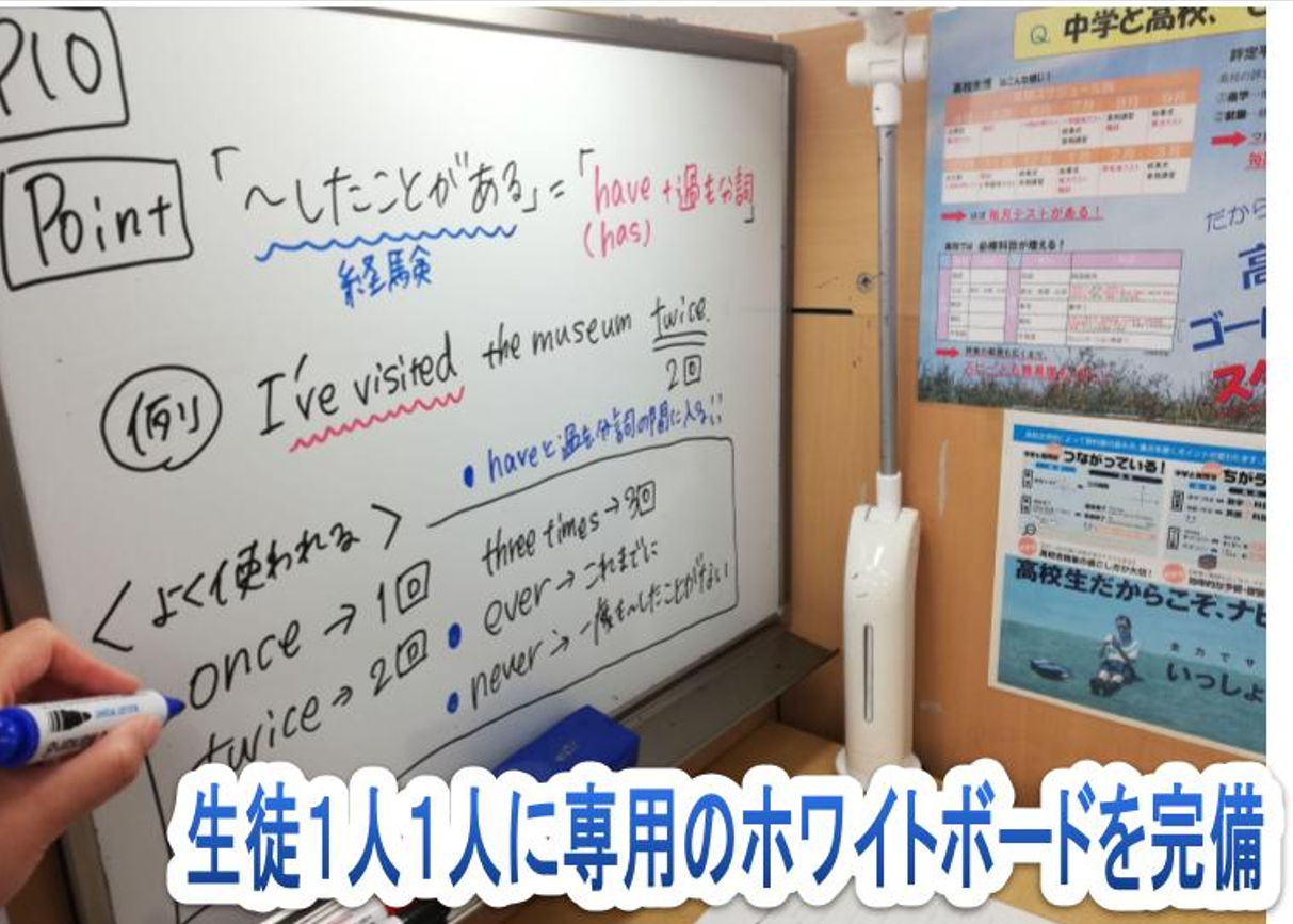 ナビ個別指導学院では、生徒様1人1人に専用のホワイトボードを完備しております。