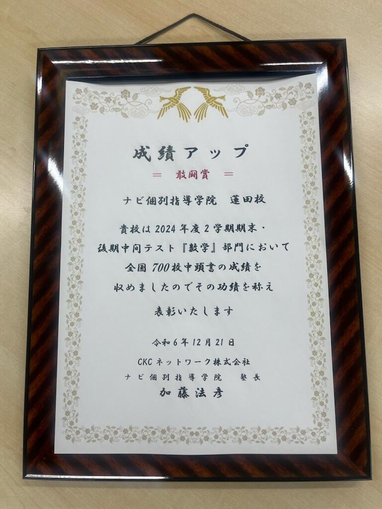 全国700教室の中で、表彰されたのは講師の指導のおかげです!