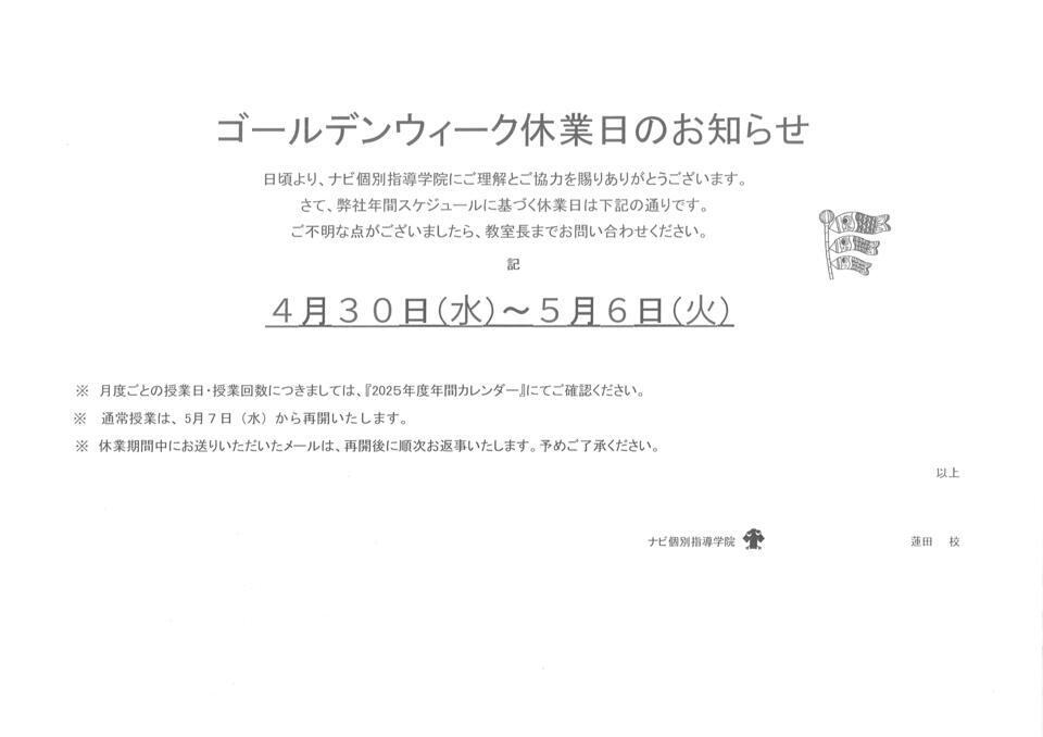 この期間は、通常授業も講習も体験授業も全てお休みです。