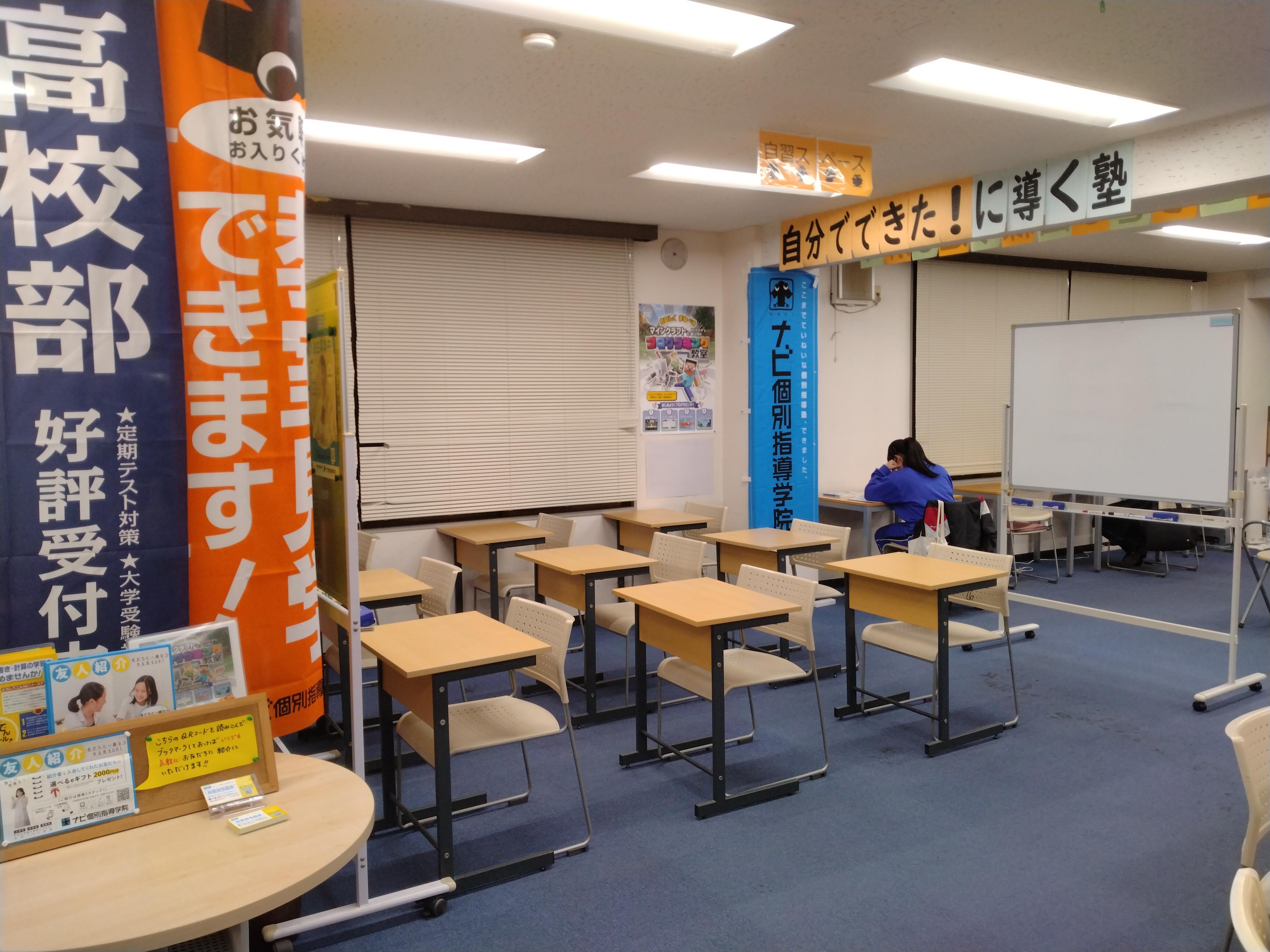 ナビ個別指導学院の自習スペースは、教室の