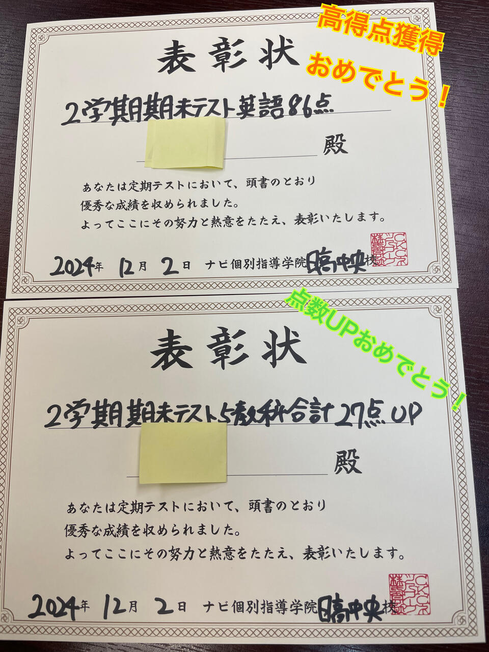 今回のテストは私からみてもいつも以上に頑張っていたと思います。