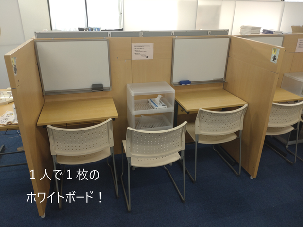 ナビ個別指導学院の授業は、個別の席ごとに設置された自分専用のホワイトボードで解き方や考え方を一緒に確認、それから生徒が問題を解くという「個別授業」スタイルです。