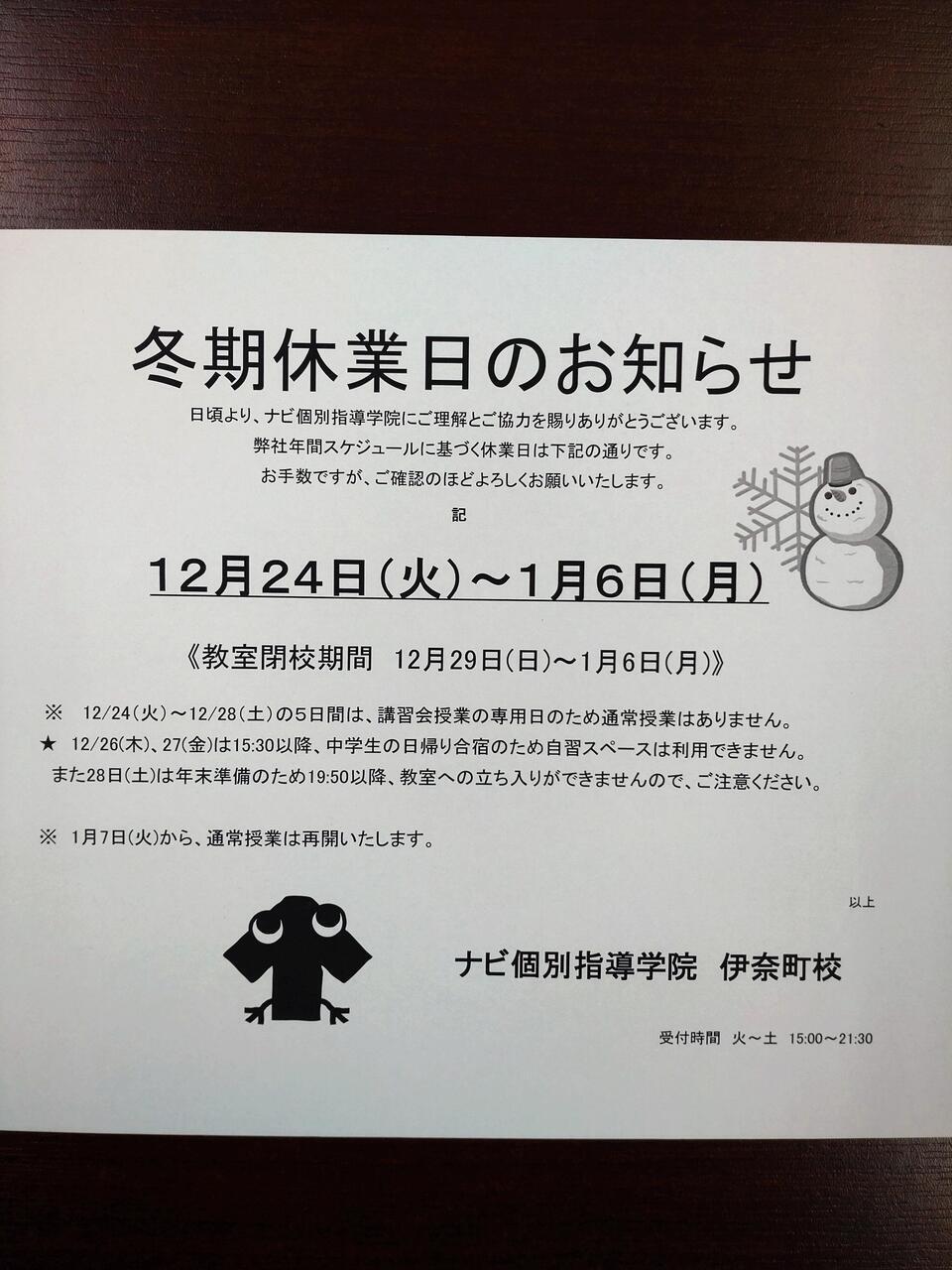 新年は1月7日(火)からの再開ですので、ご注意ください。