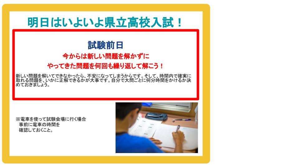明日はいよいよ公立の高校入試ですね。