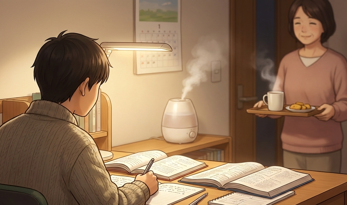 ・テレビやスマホの音に配慮する: お子様がリビングで勉強している場合は、少し音を絞る、あるいは親も読書をするなど、「一緒に戦っている」雰囲気を作るだけで十分です。