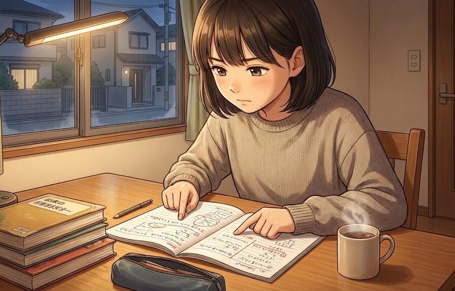 きれいなノートを作るのが目的ではありません。伸びる子のノートは、自分がどこで間違えたか、なぜその答えになったかという「考えた形跡」がしっかり残っています。