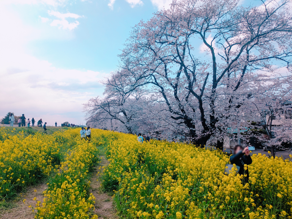 写真は昨日の熊谷の荒川公園の桜と菜の花の様子です。