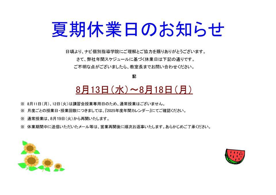 日頃より、ナビ個別指導学院にご理解とご協力を賜りありがとうございます。