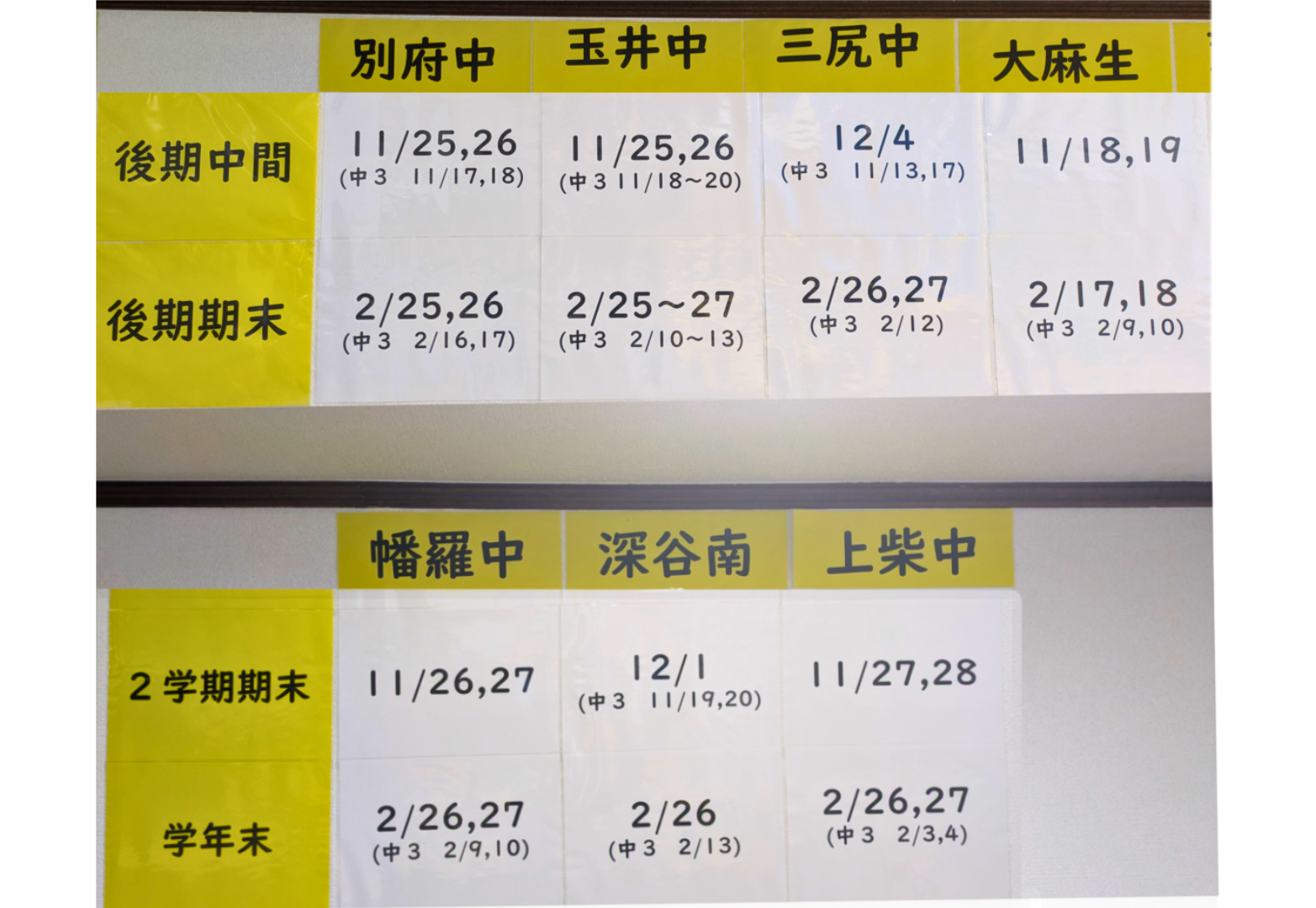 深谷市の皆様は、テスト直後や直前の方が多く、