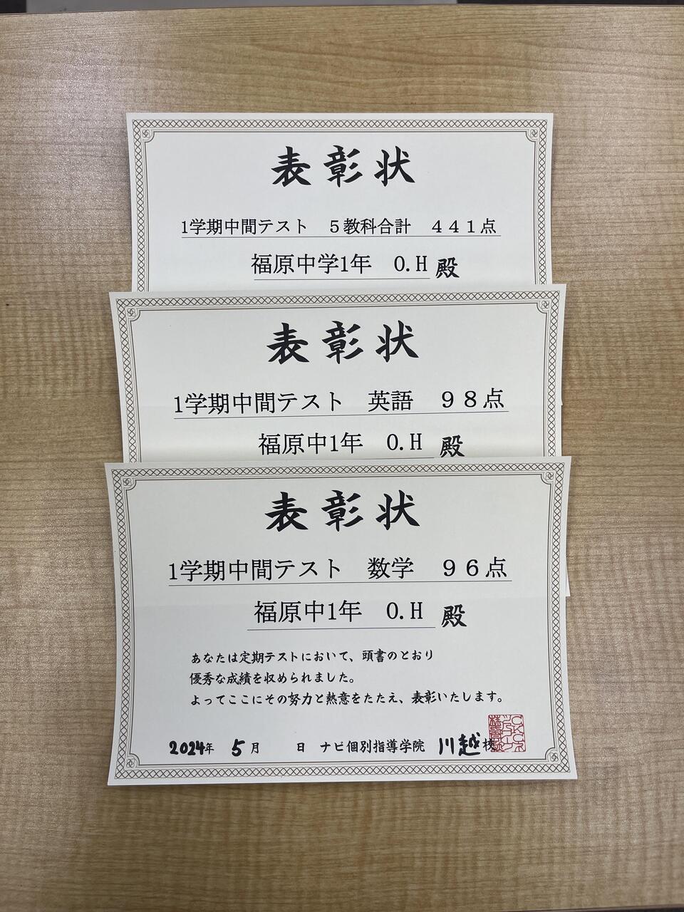 その中でも、中学生になって初めての中間テストで、いい結果を残してくれた生徒がいました!