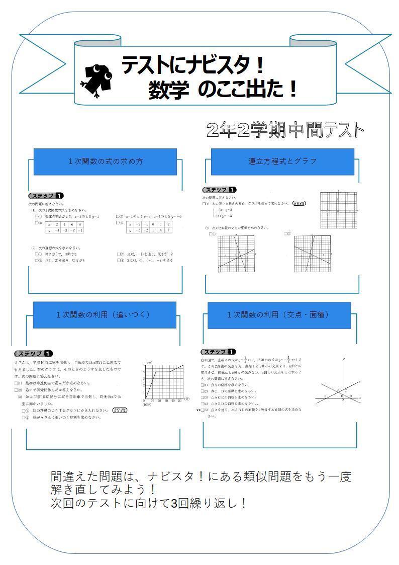 今、学校で行われている単元の確認を行い、テスト前に焦らないように準備していきましょう!