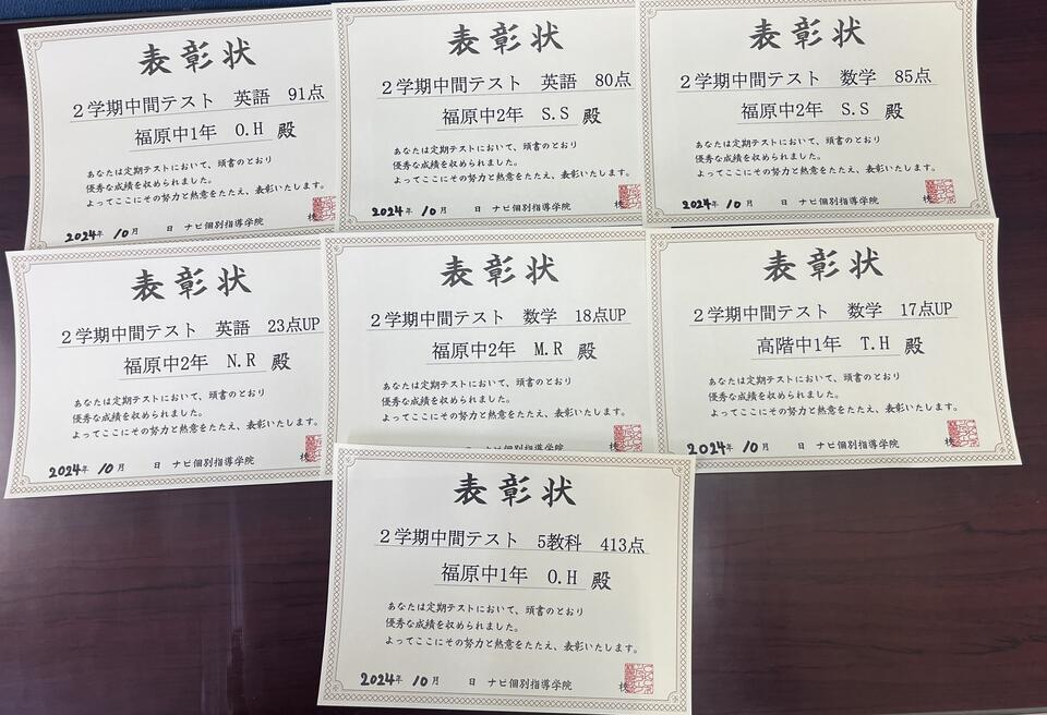 中間テストの結果はナビ個別指導学院川越校周辺の学校では、