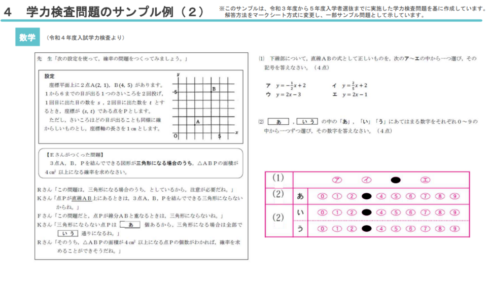 マークシートと言ってもたとえば数学の場合は0から9までのマークを用意してそれで数字を書いてもらう形式のようですので、少なくとも数学については予め用意されている答えの中から選択するものばかりではなさそうです。