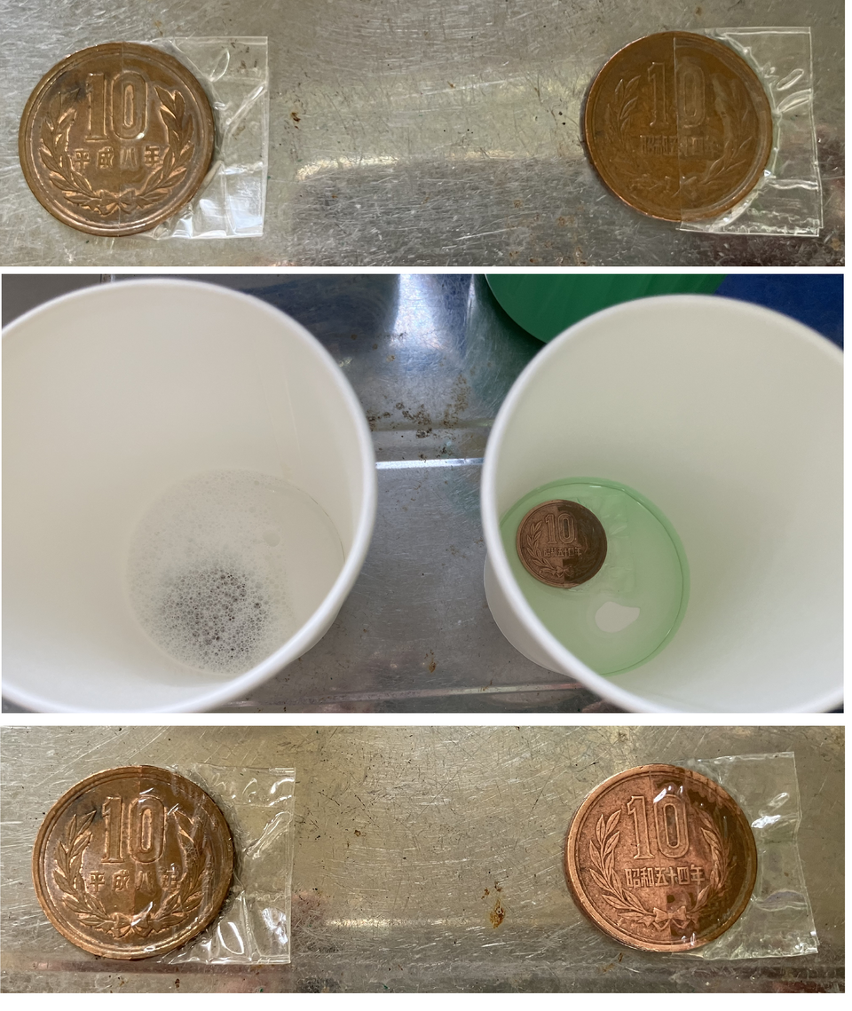 ※画像は自由研究の超メジャー、10円玉磨きを教室にあるものでやったものです。