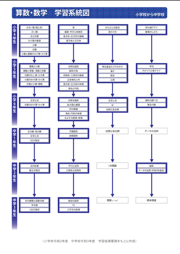 小学3,4年生あたりから算数が苦手になり、そこから上の学年、中学生となってもなかなか1度苦手になると算数、数学はつながりが強い教科になりますので苦手から好き・得意な教科にするのはなかなか容易ではないことがわかります。