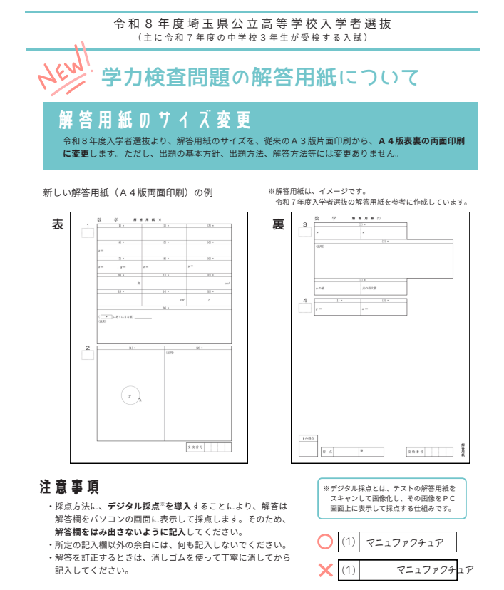 9月25日、今年度の公立高校入試の解答用紙のサイズ変更に関する発信がありました。