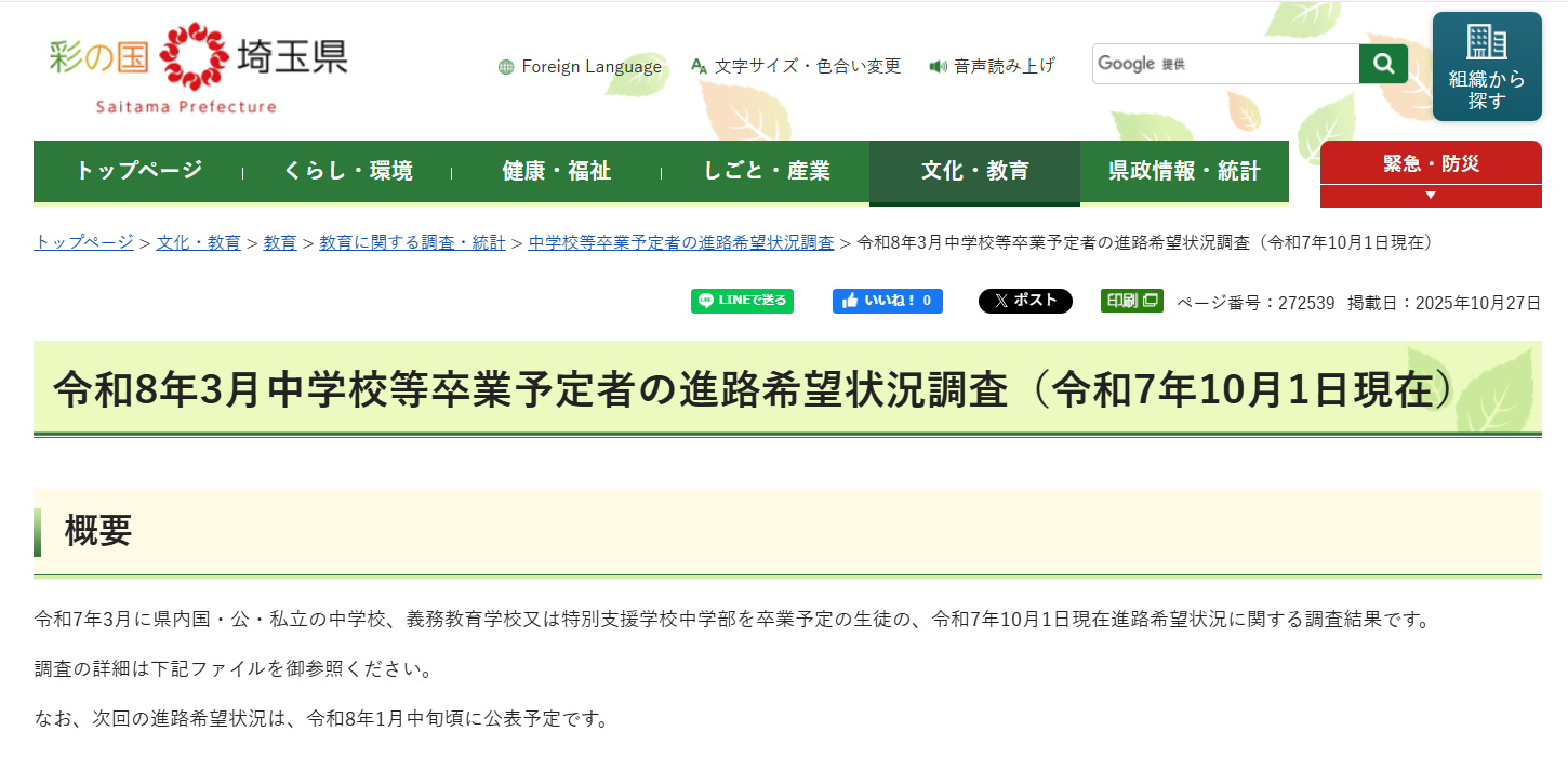 10月27日に今年度の公立高校入試についての第1回の倍率が公表されました。