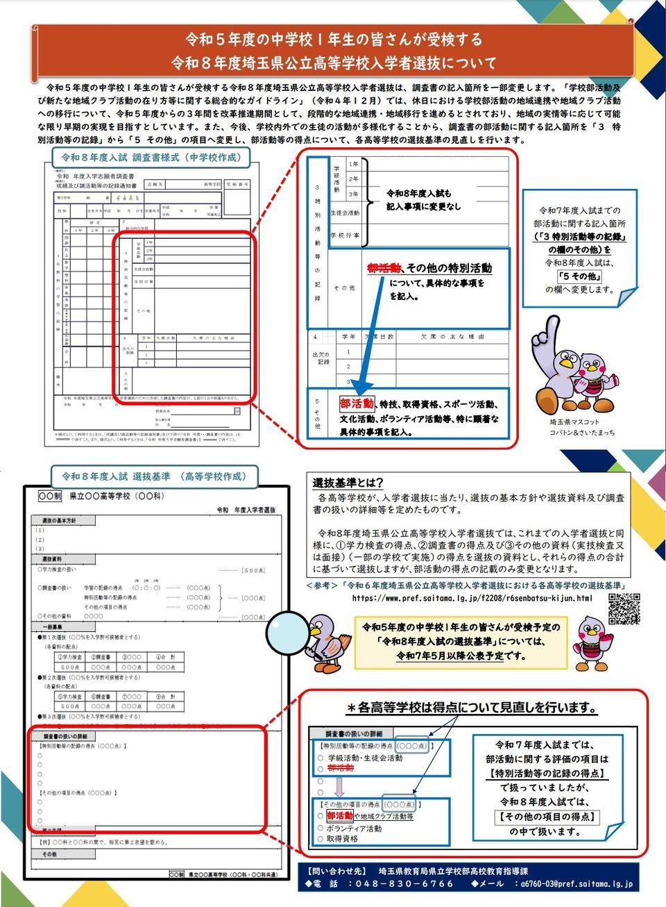 3月13日に教育委員会から「令和8年度埼玉県公立高等学校入学者選抜に関する情報」が発信されました。