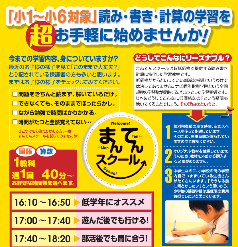 「読み・書き・計算」の基礎学習に特化した授業です!