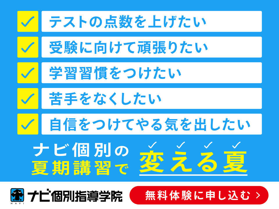 ナビ個別指導学院の夏期講習で、しっかりと1学期の復習をしていきましょう!