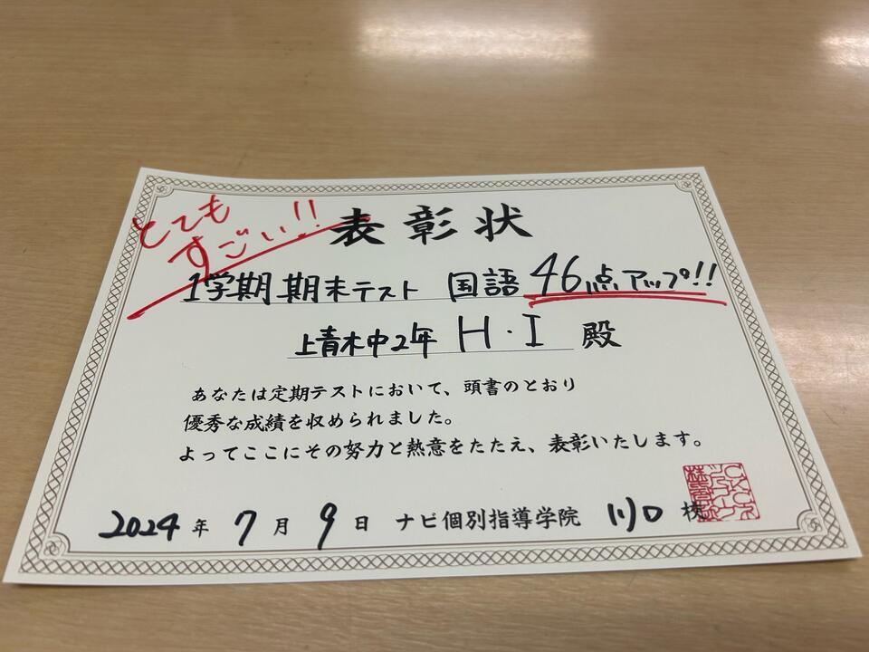 中間テストから46点アップしてくれて、点数の伸び幅に教室長もびっくりしました!