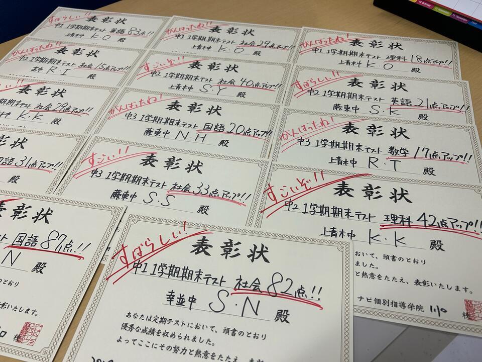 さて、中学校の1学期期末テストから2週間が経ち、点数アップの報告もたくさん来ました!