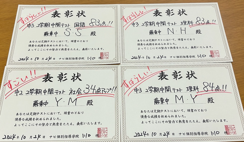 中間テストが返却され、ナビ個別にもぞくぞくと結果を持って来てくれております。