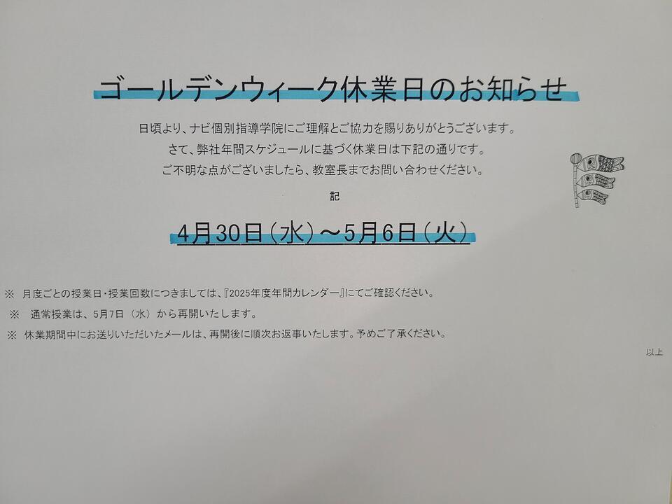 日頃より、ナビ個別指導学院に