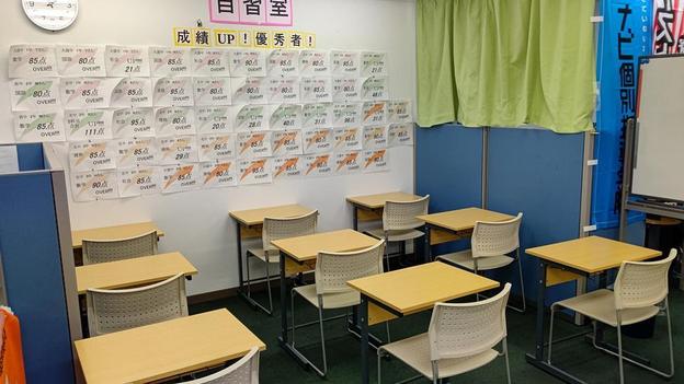 ナビ個別指導学院の授業は、個別の席ごとに設置された自分専用のホワイトボードで解き方や考え方を一緒に確認、それから生徒が問題を解くという「個別授業」スタイルです。