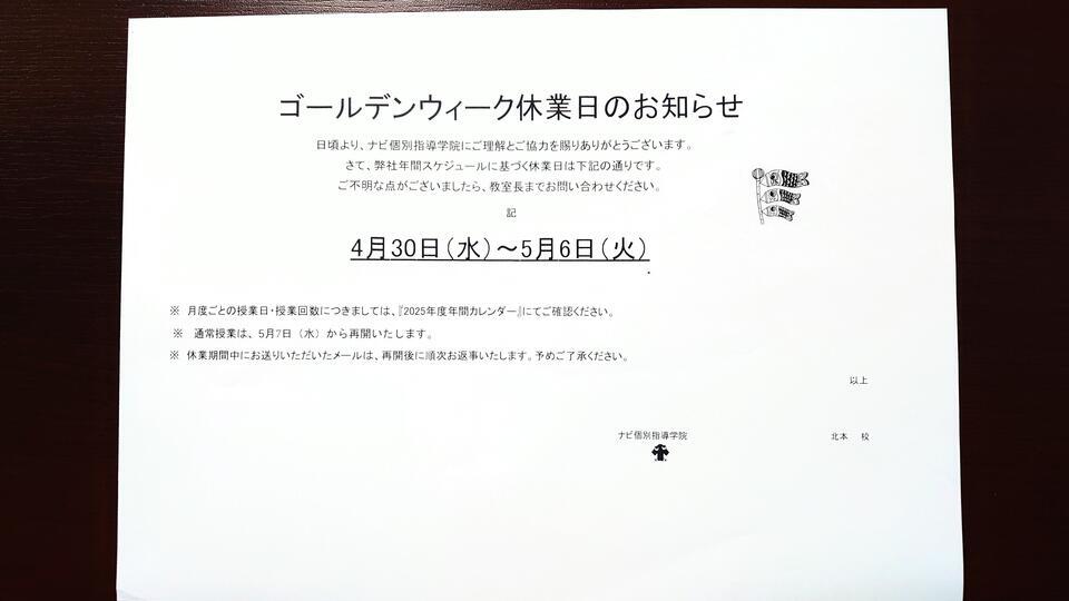ナビ個別指導学院 北本校の年末年始における