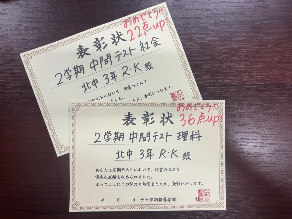 北辰テストも上がっているので、期末テストもこの調子で頑張っていきましょう!!